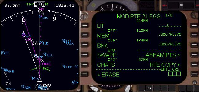 FMC は現在の位置から LIT ウェイポイントまでのコースラインを引き、LEGS