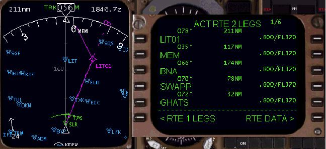 AFDS は LNAV モードで、オートパイロットはあたらしく作成した place/radial/place/radial