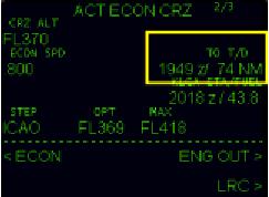 FMC は降下開始地点 ( T/D ) を LEGS ページでプログラムされている最初の降下高度の強制を元に計算します
