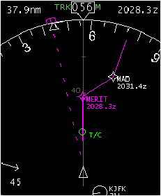 飛行機が 056 度の方向に地上目標の MERIT 交差点に向かって飛行しているのが分るでしょうか