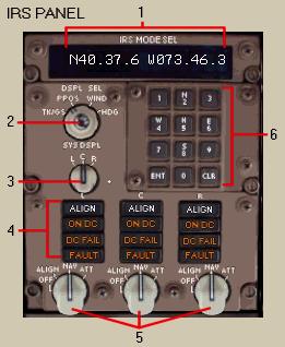 慣性参照システム ( IRS ) はコンピューターシステムであり、飛行機の位置、姿勢、ヘディング、加速度をレーザージャイロを使用して表示します