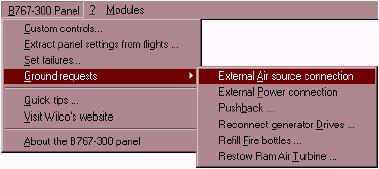 外部エアーは APU が OFF かまたは機能していない時、エアコンとエンジンスタートのためにエアーを供給するために使用します