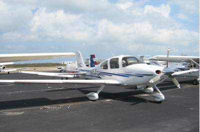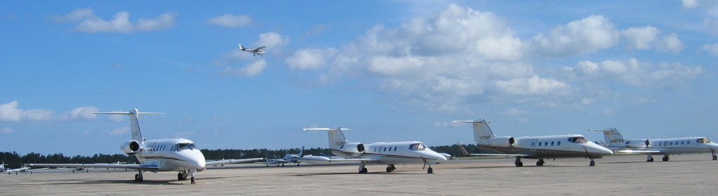 サンフォード空港にずらりと並んだビズジェット達。真っ青な空、白い雲。なんという飛行日和なんでしょう(^^v