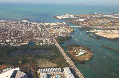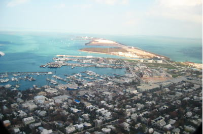 ![]() キーウェスト国際空港に着陸直前の左手の景色。 ヨットがいっぱい。 |