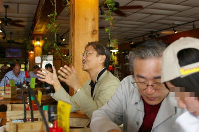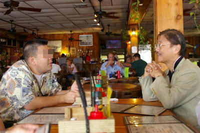 ![]() その隣で何を食べるかについて熱く語り合う娘と私。(^^; こらこら マヒマヒ(白身魚 和名シーラ?)のステーキをおいしくいただきました。 |
