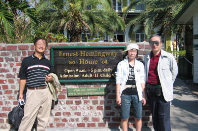 ![]() 文豪ヘミングウェイの家の前でパチリ。しかし、暑い暑い。 |