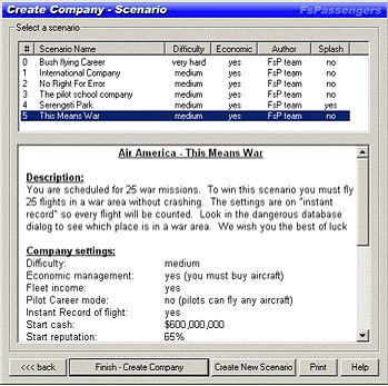 FsPassengersには6つの事前に定義されたシナリオのリストが用意されています。