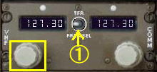 つまみを操作して周波数を合わせます。@のスイッチを左に倒せば左の周波数が、右に倒せば右の周波数が明るく表示され、有効になります。