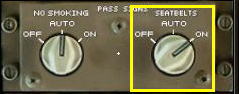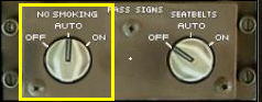 ノー・スモーキング・スイッチがオート・ポジションの場合、ランディング・ギアが完全にエクステンドすればキャビンのノー・スモーキング・サインが点灯し、リトラクトされれば消灯します。