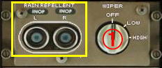 ワイパーセレクタの左側には降雨が激しいときにウィンド・シールド・ワイパーと同時に使用する揆水剤のレイン・リペレントのスイッチがあります。