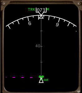 EHSI の表示もルートがアクティブになったことを示すマゼンタ色のルートになります。
