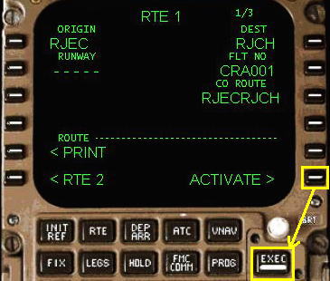 6R LSK ( ACTIVATE ) を押して、「EXEC」 キーを押す2段階の操作となっています。