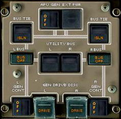 右のBUS・TIEボタンを押し、ライト・AC・バスに電力を供給します。