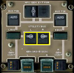 左右のUTILITY・BUSボタンを押し、ユーティリティ・バスに電力を供給します。