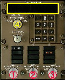 IRS・モード・セレクターズ・スイッチがOFFの位置にある場合には@ABをNAV位置にします。すでにNAVになっている場合には一日の初便では FULL ALIGN、各便間であれば QUICK ALIGN をします。