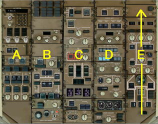この「E」だけは下から上へ(機体の前方から後方へ)向かってチェック、操作を行います。