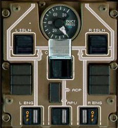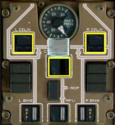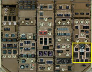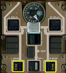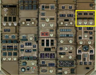 左右のエンジン・ブリード・エア・スイッチをONにします。OFFランプが点灯していますが、エンジンが作動するとエンジン・ブリード・エア・バルブは自動的にオープンします。
