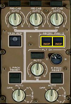 リサーキュレーション (再循環) ・ファン・システムはエア・コンディショニング・パックへの負荷を軽減し、またエンジン・ブリード・エアの必要供給量も減少させる機能があります。