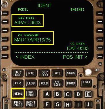 この IDENT ページではアクティブ・ナビゲーション・データの有効日をチェックします。