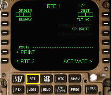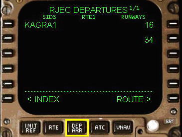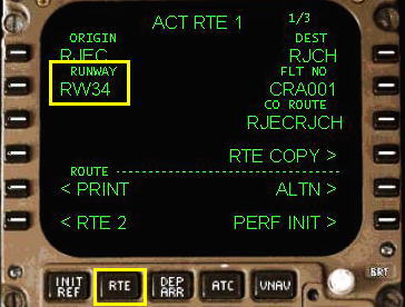 もう一度 「RTE」 ボタンを押してルート・ページにし、滑走路および