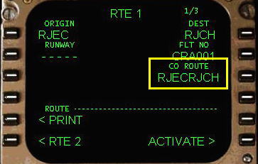 ICAO 略号 「RJEC」 をキーインし、1L LSK を押します。
