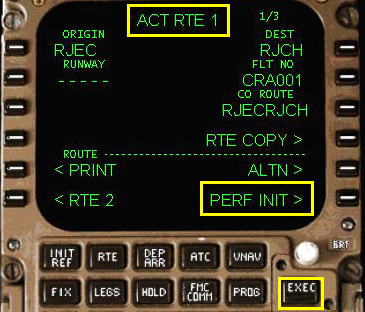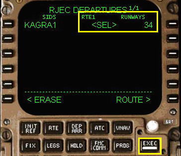 6R LSK ( ACTIVATE ) を押して、「EXEC」 キーを押す2段階の操作となっています。