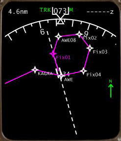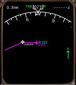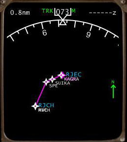 EHSI の表示もルートがアクティブになったことを示すマゼンタ色のルートになります。