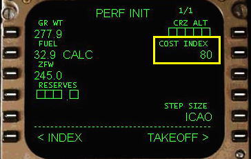 コスト・インデックスを入力します。この値は