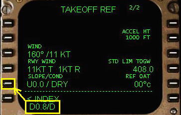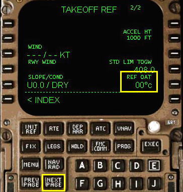 ( アシューム温度とよびます ) が、テイクオフ・リファレンスページに入力され、スラストセッティングの減少の計算に使われます。アシューム温度は飛行機の滑走路を与えるため飛行機の離陸重量の基本の第一に計算されます。