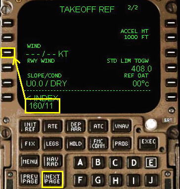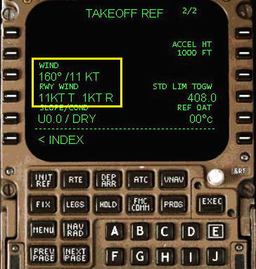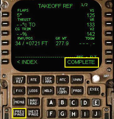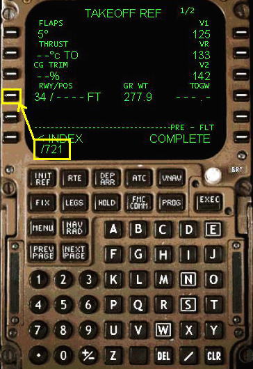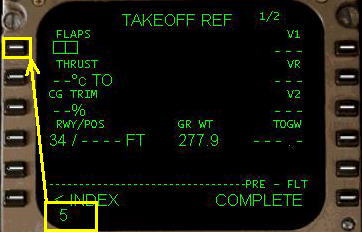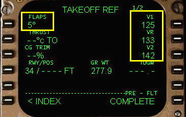 V1, VR , V2 速度が FMC により計算され変更されます。外気温度を変更する場合は数字をキーインして、6R