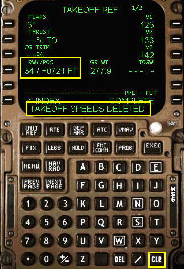 TAKEOFF SPEEDS DELETED と表示され、変更された情報を元に