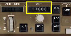 MCP のアルティテュード・セレクターを回して,アルティテュード・ディスプレイにATCから指示された高度を入力します。ここでは例として