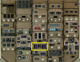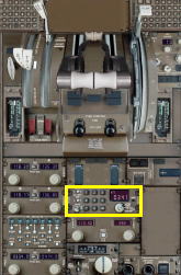 CG の値を FMC の TAKEOFF REP ページ 2 で入力し、計算されたトリム値をもとにペデスタルのスタビライザー・トリムをセットする。この操作は
