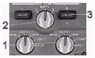 1- Engine Start Switches: Controls engine start valve and ignition.