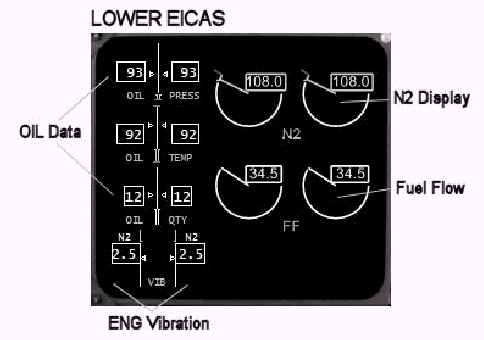 メインパネルの中央にある2つのCRTは、EICASスクリーンとして参照されます。