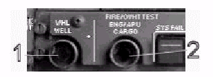 1- Wheel Well Fire Test Button: Press and hold to initiate a test of the