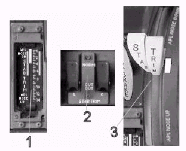 3- Stab Trim Manual Control Levers: Movement of these levers with the mouse