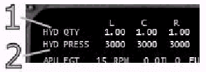 メインパネル上のSTATUSボタンを押すと、下のEICAS画面に油圧ディスプレイが現れます。