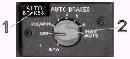 2- AUTO BRAKES Selector: Selects Autobrakes for use on takeoff or