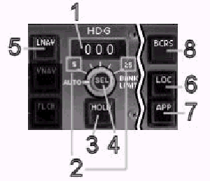 セレクトされると、航空機はヘディング表示窓に表示されているヘディングに向かって飛行するように指示されます。