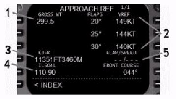 アプローチ参照速度 : GROSS WT領域に重量が入力されると、アプローチVref速度が自動的にアップデートされます