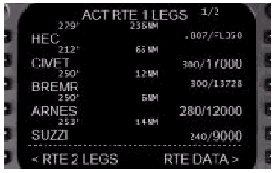 CDUのVNAVファンクションキーを押すと、アクティブなVNAVページが表示されます。
