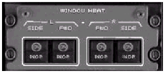 | ウインドウヒートスイッチ - ON エンジンとウィングアンチアイススイッチ - OFF |
