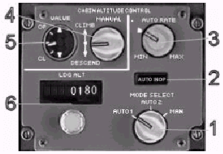 自動レートセレクタ : AUTO モードにおいて客室高度の上昇および降下の制限を選択します。指標となるレートは